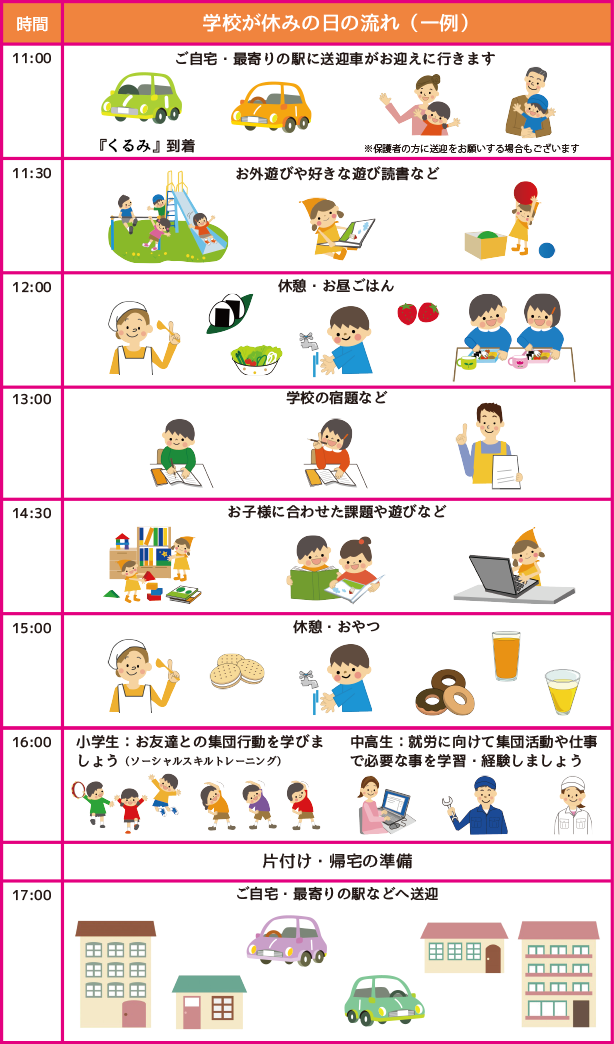 ■ 昼食の時間を含んでご利用される場合は、お弁当もしくは昼食負担金のご用意をお願いいたします。